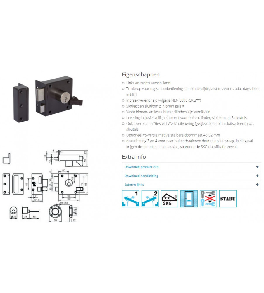 draairichting 3 en 4 voor naar buitendraaiende deuren op aanvraag, in dit geval krijgen de sloten een aanpassing waardoor de SKG classificatie vervalt