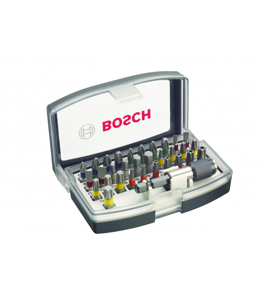De schroefbitset, 32 stuks, is een goede keuze voor universeel gebruik. Deze set met verschillende schroefbits wordt geleverd in een kleine en compacte box met een transparant deksel, dat binnen handbereik aan een riem kan worden gehangen. Daarnaast zijn de bits voorzien van een kleurcodering, zodat u snel het juiste soort bit kunt vinden. Het heeft een zeskantschacht van 1/4 inch en is bedoeld voor universele schroefwerkzaamheden met schroevendraaiers en boor-/schroefmachines. De schroefbitset, 32 stuks, wordt geleverd in een praktische en robuuste box die goed zicht biedt op de inhoud en kan worden gebruikt voor veilig opbergen en transporteren. Deze set bevat: PH1, PH2 (2x), PH3 PZ1, PZ2 (2x), PZ3 HEX 3/4/5/6 T10, T15, T20 (2x), T25, T27, T30, T40 S 3/4/5/6 Th 10/15/20/25/27/30/40 De schroefbitset, 32 stuks, wordt geleverd in een praktische en robuuste set die goed zicht biedt op de inhoud en kan worden gebruikt voor veilig opbergen en transporteren.