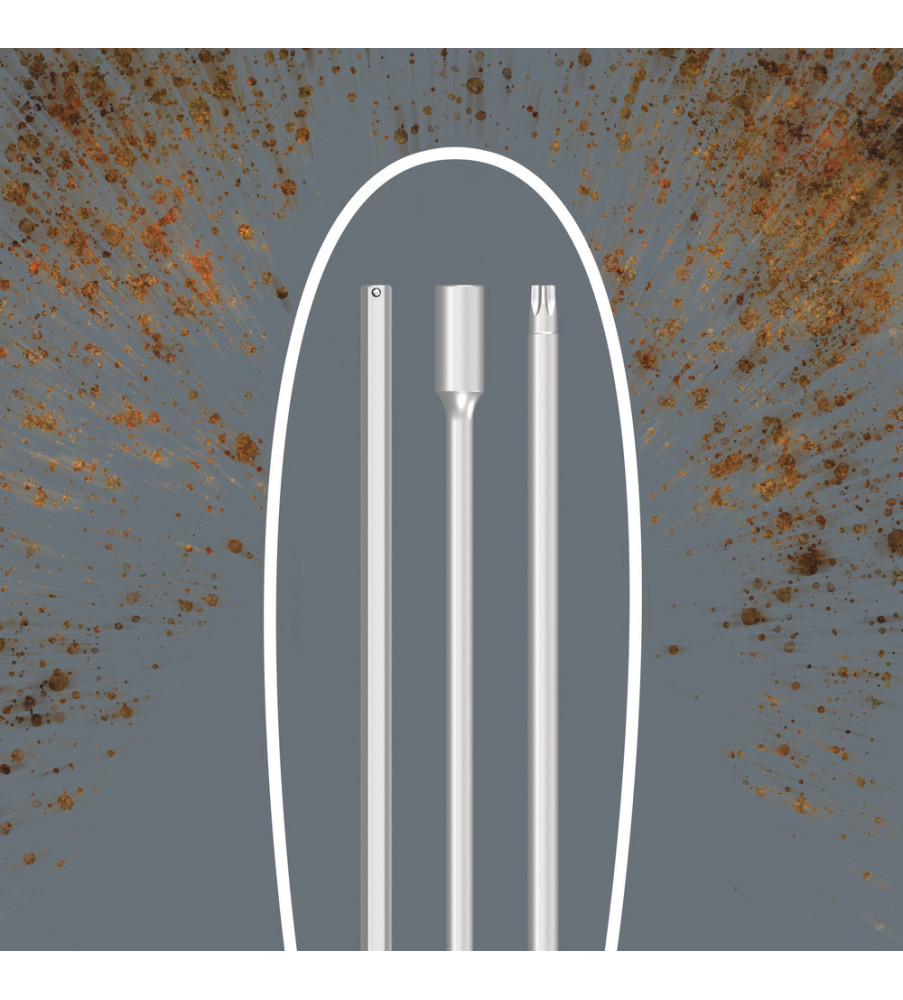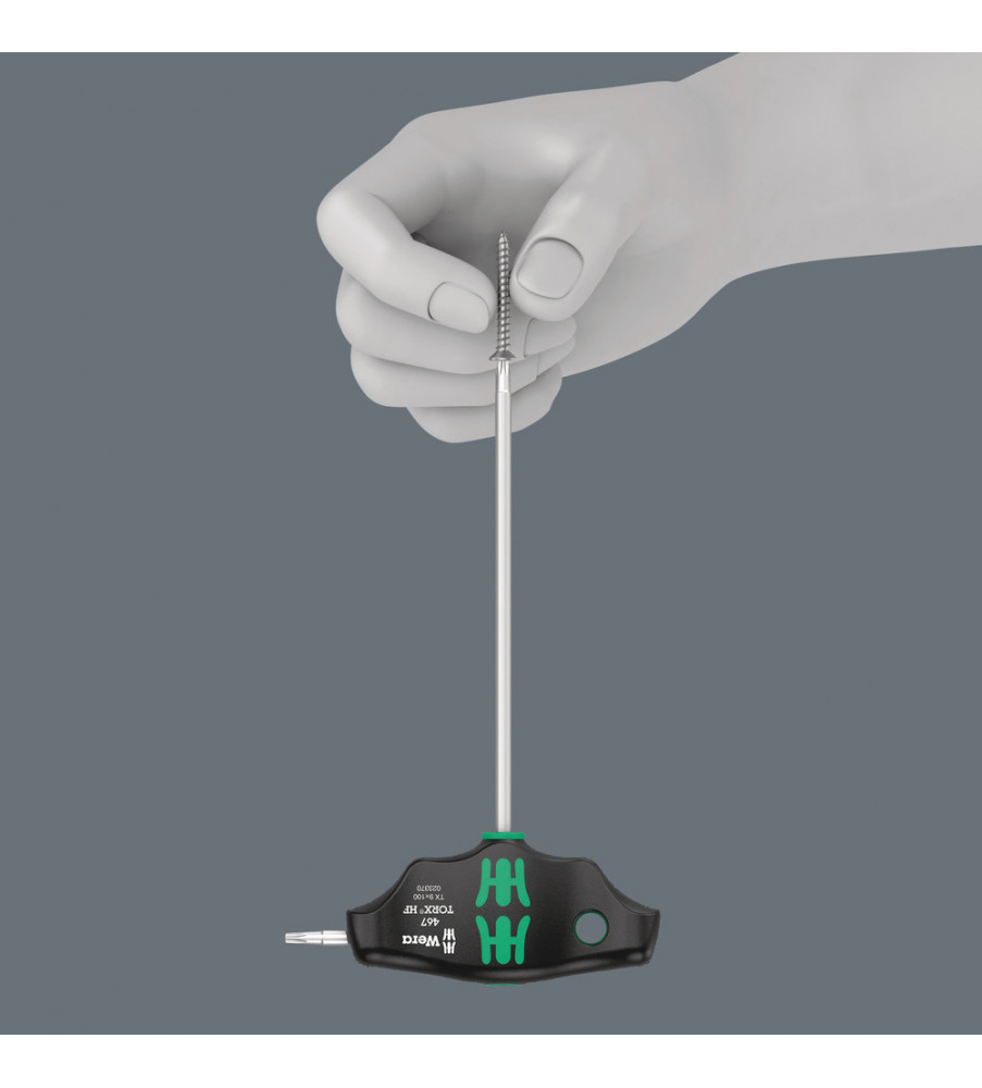 Schroevendraaiers met T-greep: De ideale vorm van de handgreep maakt overbrenging van uiterst hoge aanhaal- en losdraaimomenten mogelijk. Dankzij de ergonomische vorm van de handgreep wordt de bal van de hand goed opgevuld en komen de vingers veilig in de zacht afgeronde inkepingen in de handgreep te liggen. De gehele hand krijgt grip op de handgreep waardoor wrijvingsverliezen tussen hand en handgreep worden voorkomen. Met vasthoudfunctie voor een goede grip op de TORX® schroef op het gereedschap. Speciale coating voor extra corrosiebescherming en optimale grip op de schroef.
