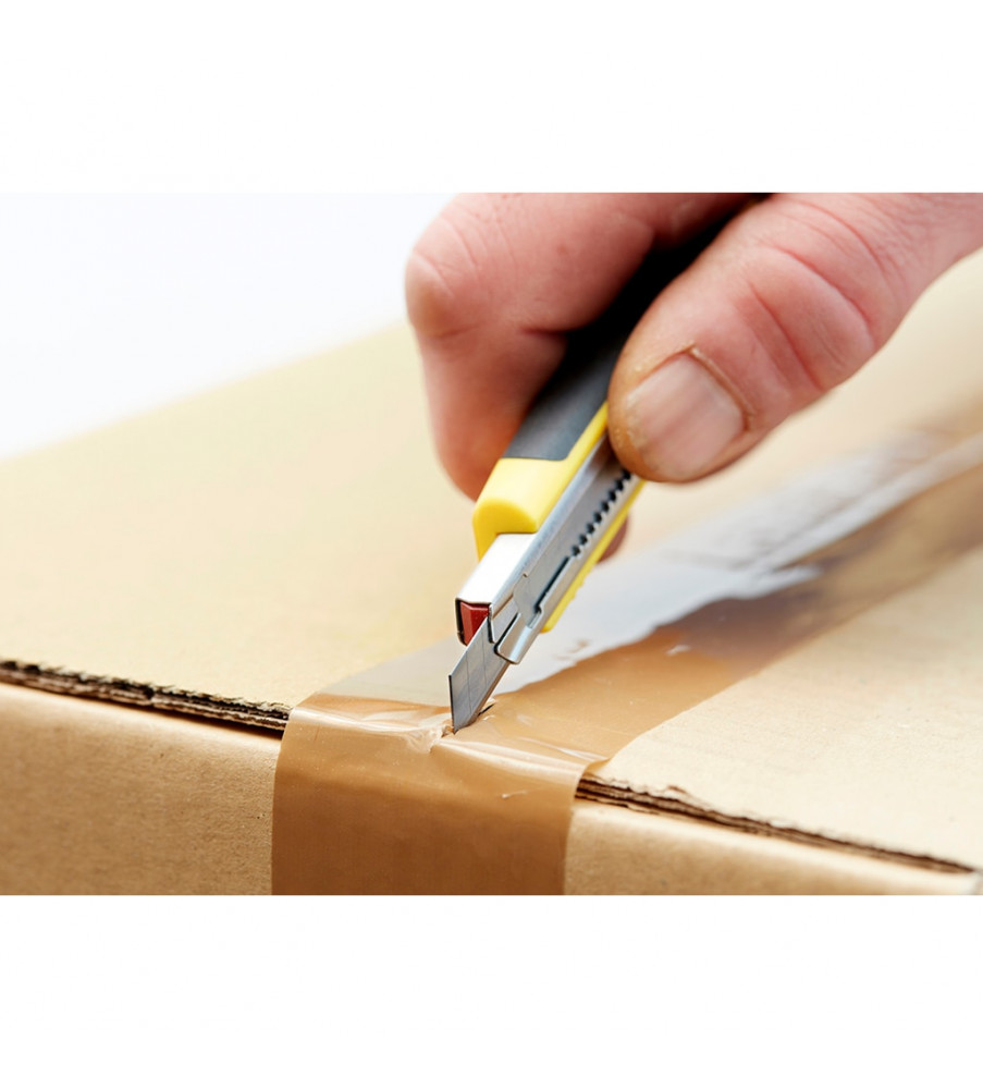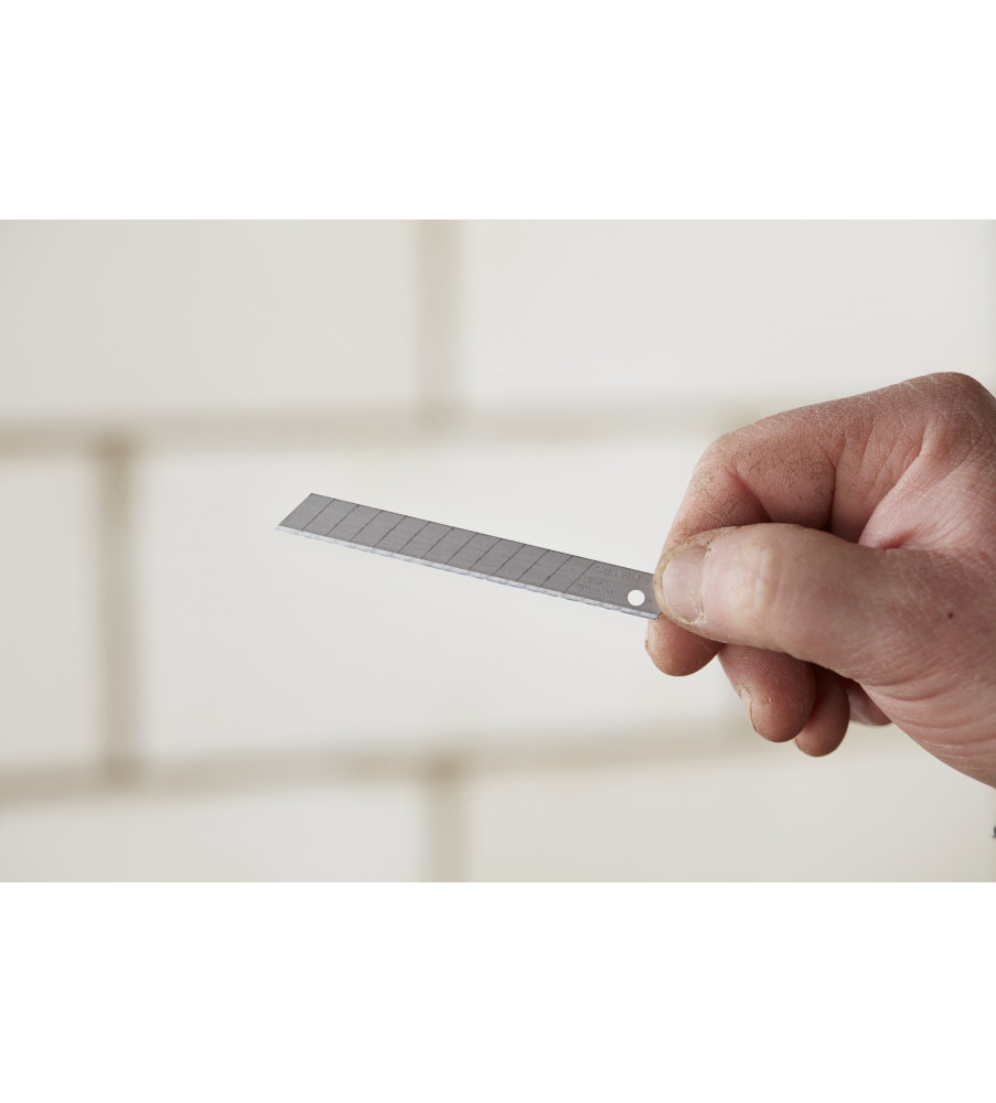 Dispenser met kapje om messegmenten af te breken en compartiment om gebruikte segmenten veilig op te bergen
