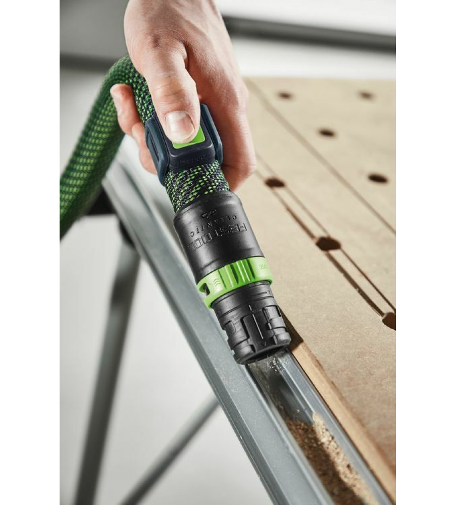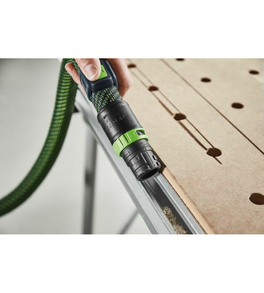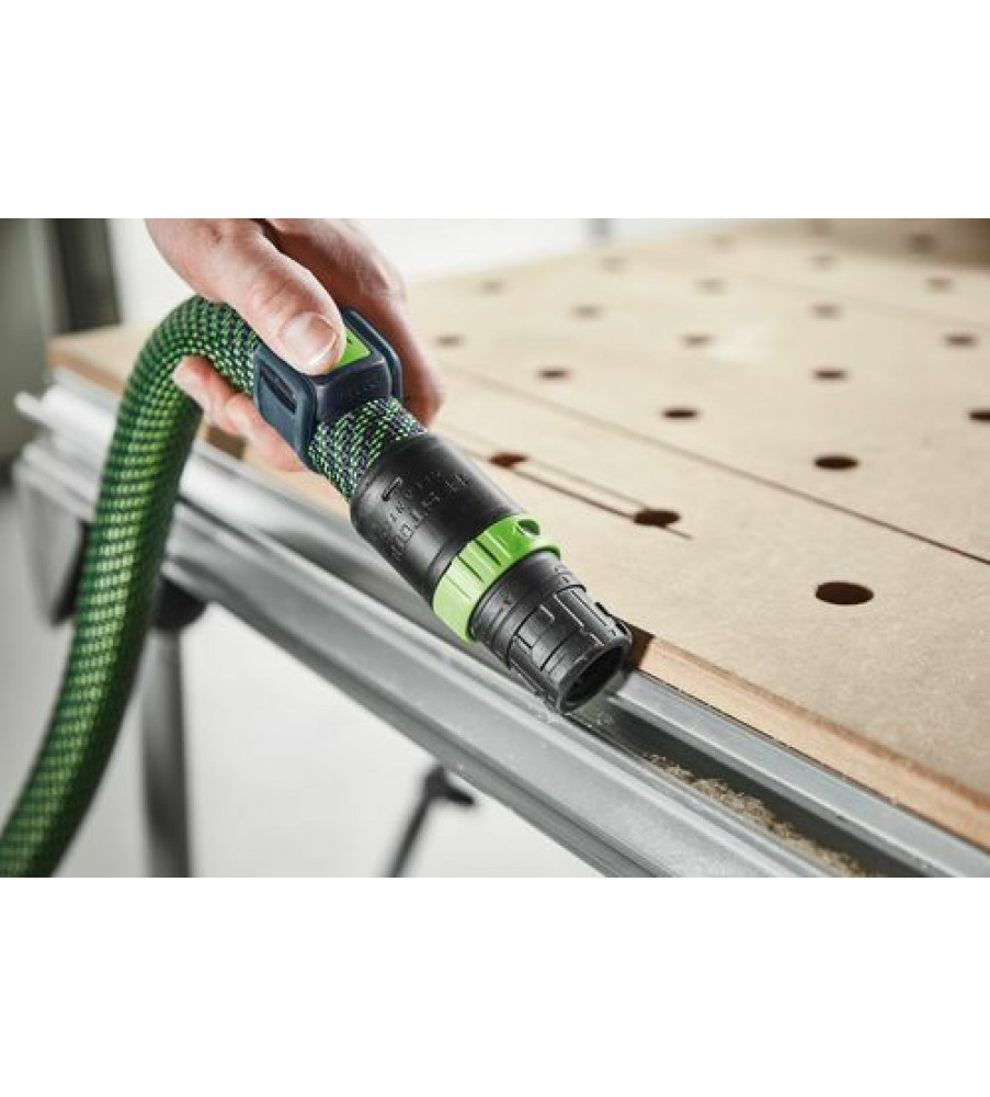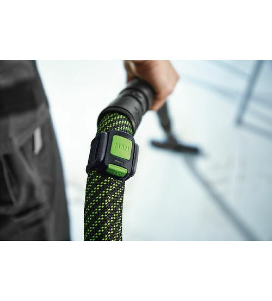 Dankzij de combinatie van Bluetooth® module op de CLEANTEC mobiele stofzuiger en afstandbediening op de zuigslang hoeft u niet op en neer te lopen naar de stofzuiger: afzuiging eenvoudig direct op de slang met de afstandbediening starten. Ideaal voor korte schoonmaakwerkzaamheden tussendoor - gewoon omschakelen in de reinigingsmodus, ook wanneer de mobiele stofzuiger zich in de AUTO-modus bevindt. Maar de Bluetooth® module op de mobiele stofzuiger communiceert niet alleen met de nieuwe afstandbediening – maar ook met de Festool Bluetooth® accupacks. Zij zorgen ervoor dat de mobiele stofzuiger ook bij het inschakelen van accugereedschap automatisch start. Zo profiteert u nu ook bij het werken met Festool accuproducten van het Festool stofvrij-systeem.Reikwijdte 10 m; Technologie Bluetooth®