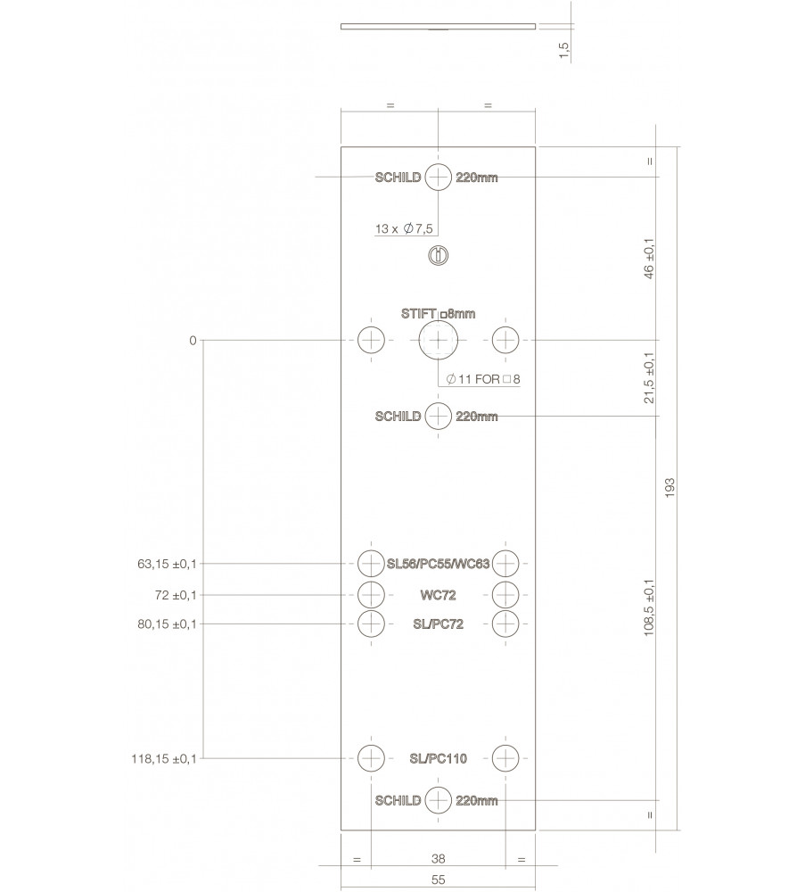 BOORSJABLOON INTERSTEEL TBV NOKKENGARNITUREN BINNENDEURBESLAG RVS