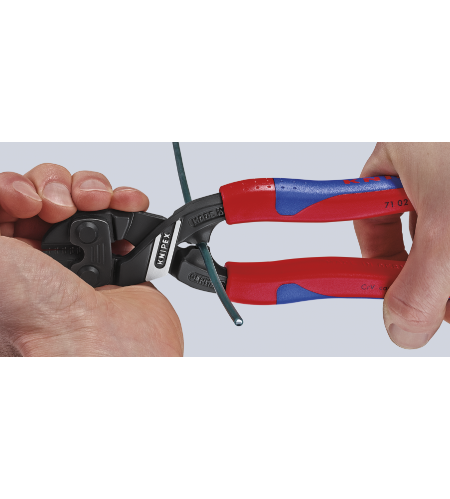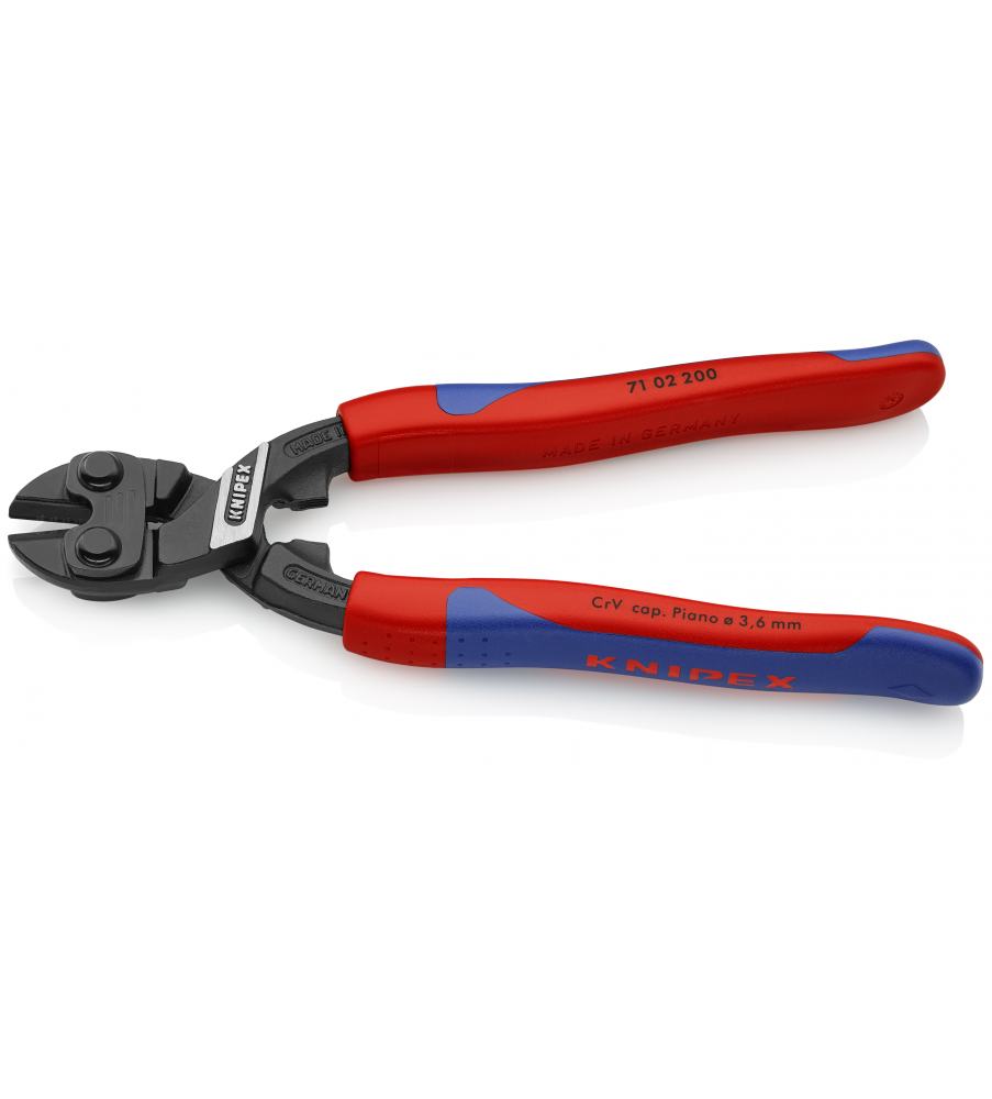 Met precisie-snijkanten voor zachte en harde draad en voor pianodraad. Knipt materialen zoals bouten, nagels, klinknagels enz. tot Ø 5,2 mm. Bijzonder hoge snijcapaciteit bij lage krachtinspanning dankzij de hoogst efficiënte hefboomconstructie. Snijkanten extra inductief gehard, hardheid van de snijkanten ca. 64 HRC. Gesmeed. Uiterst krachtig Chroom-Vanadiumstaal, in olie gehard en getemperd.