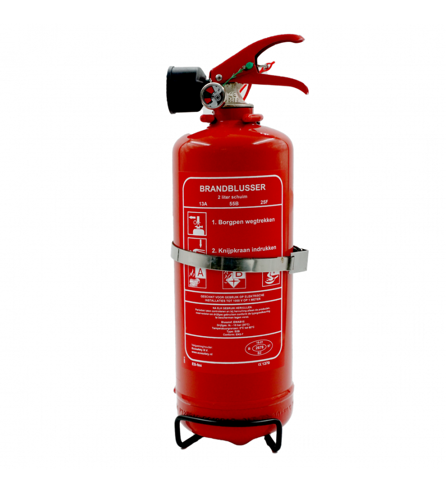 Schuimblusser 2 liter is inzetbaar voor het type A , B en F branden. Wordt geleverd inclusief een ophangbeugel en keuring voor verzekering. Geschikt voor branden bij hout, papier, textiel en andere vaste stoffen evenals vloeibare stoffen. Groot voordeel van schuimblussers is dat deze brandblusser een langere blusduur heeft dan een poederblusser en betrekkelijk minder nevenschade veroorzaakt. Deze blusser is uitermate geschikt voor huiselijk gebruik