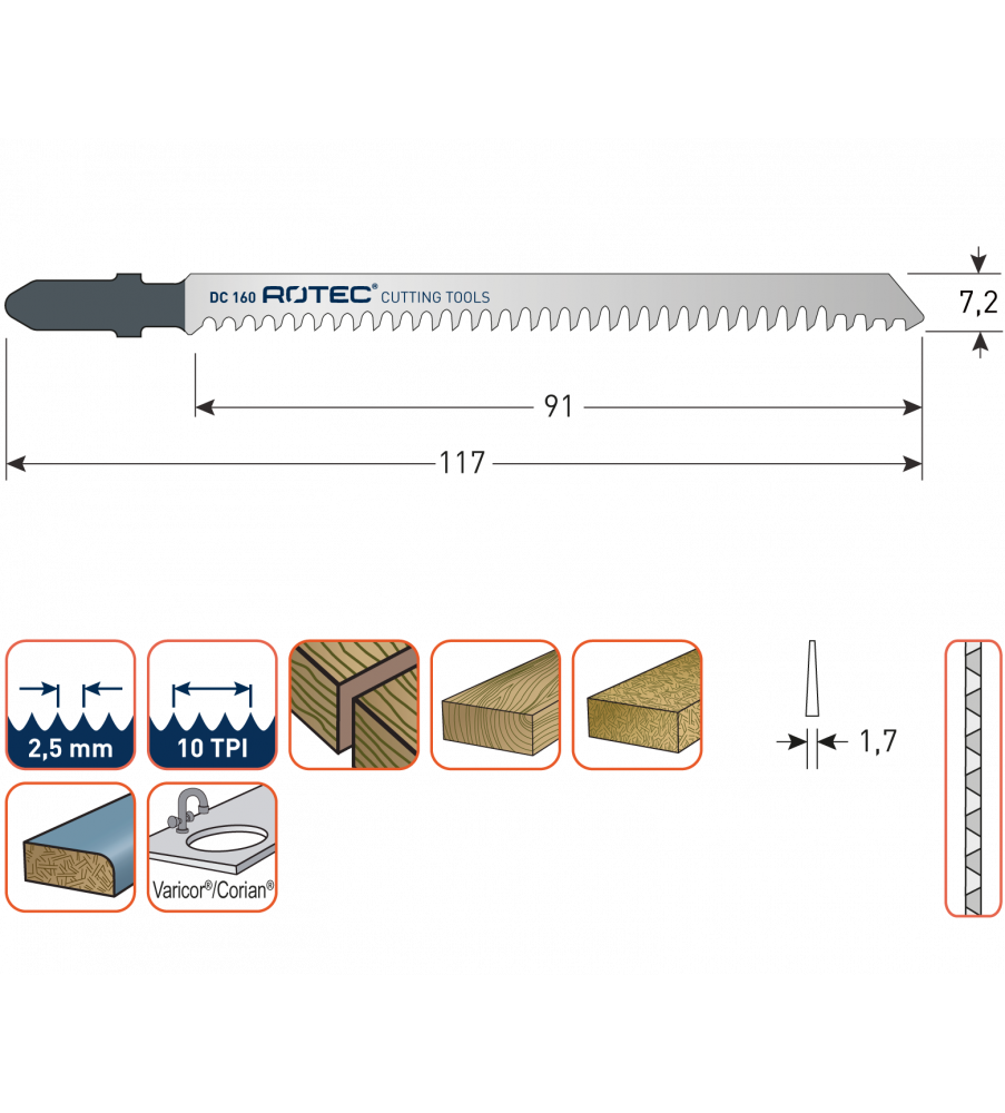 DECOUPEERZAAGBLAD DC160 HOUT/KEUKENBLADEN FIJN (5 STUKS)
