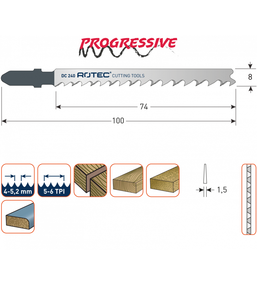 DECOUPEERZAAGBLAD DC240 PROGRESSIVE HOUT FIJN (5 STUKS)