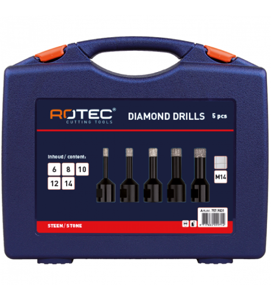| Omschrijving | 5-dlg. Set diamantboorkronen |