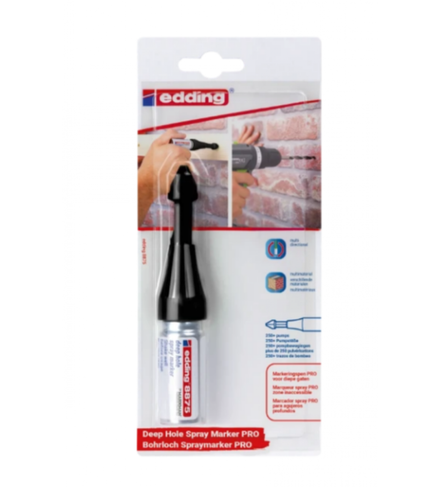 Deze niet-permanente krijt spray marker is ideaal voor het snel en goed zichtbaar markeren van boorgaten en bevestigingspunten tot 100mm diep met een diameter van 3-13mm.