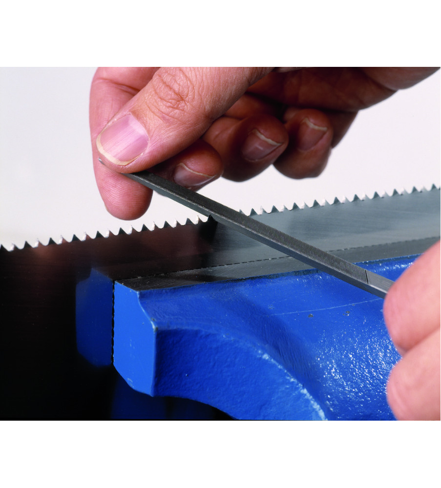 Voor het scherpen van zagen met een fijne afkortvertanding