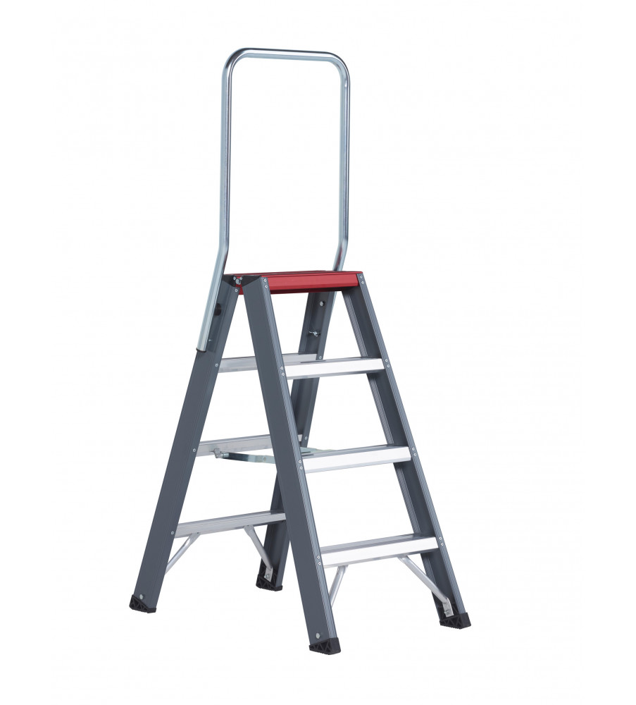 Falco (FEO) enkel oploopbaar. De trap voor professioneel gebruik De Falco is gemaakt voor intensief gebruik. De robuust vormgegeven trap is ideaal voor elke professionele klus. Het zelfontgrendelende scharniersysteem maakt de trap opvallend handig en eenvoudig in gebruik. Snel gepakt, snel weer opgeruimd. De grijze coating is niet alleen stijlvol. Het is bovendien vuilafstotend en geeft niet af aan je handen. Door de schetsschoren en grote voeten weet je zeker dat je stabiel staat. De steunbeugel is niet alleen veilig. Het bakje in de beugel geeft je ook een plek voor je gereedschap.