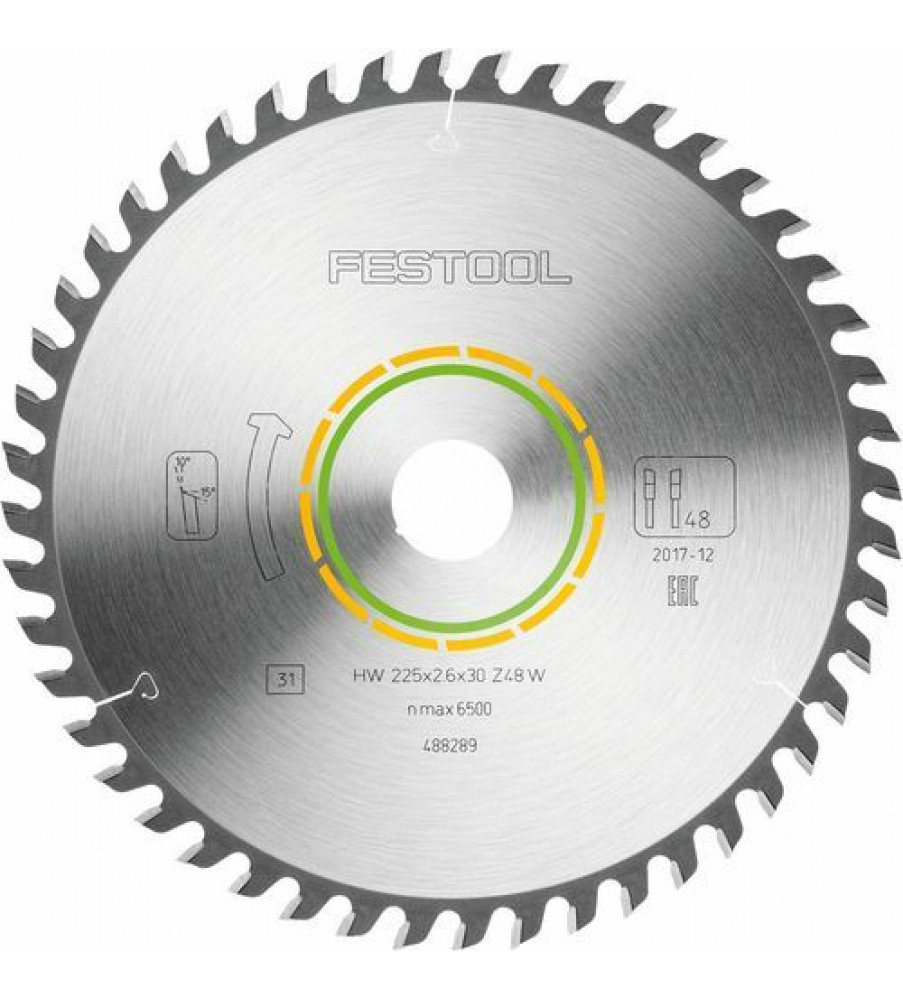 Diameter 225 mm; Zaagbreedte 2.6 mm; Asgat-Ø 30 mm; Aantal tanden 48; Spaanhoek 10 °; Tandvorm W