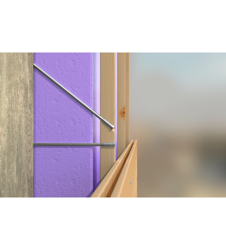Door naast een haaks geplaatste afstandsschroef ook afstandsschroef onder een hoek te plaatsen kunnen afschuifkrachten in de constructie worden opgenomen.