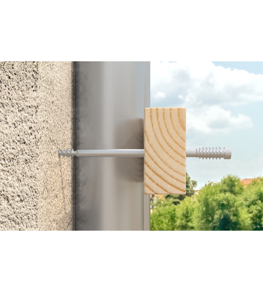 De fischer Afstandsschroef ASL is een speciale schroef van gegalvaniseerd staal met twee, in de spoed op elkaar afgestemde schroefdraden, voor een nauwkeurige en tijdbesparende afstandsmontage. De speciale schroef wordt in de doorsteekmontage aangebracht. Bij het indraaien van de schroef graaft de buitenste schroefdraad zich in het voorgeboorde montagestuk en zet deze vast. Als de schroef schuin onder een hoek van 15 - 30° wordt aangebracht, kunnen hogere dwarsbelastingen worden opgenomen. De fischer Afstandsschroef ASL is ideaal om raam- en deurkozijnen, bekledingen en onderconstructies van hout zonder pluggen in hout- en houtmaterialen te bevestigen.