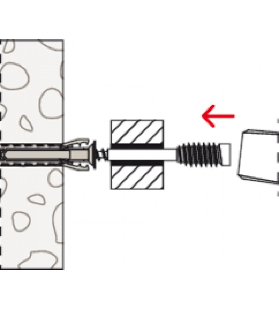 De afstandsschroef kan in combinatie met DuoPower 8 en SX 8 pluggen worden gebruikt voor nagenoeg alle wandmaterialen, wat een stevige bevestiging garandeert.