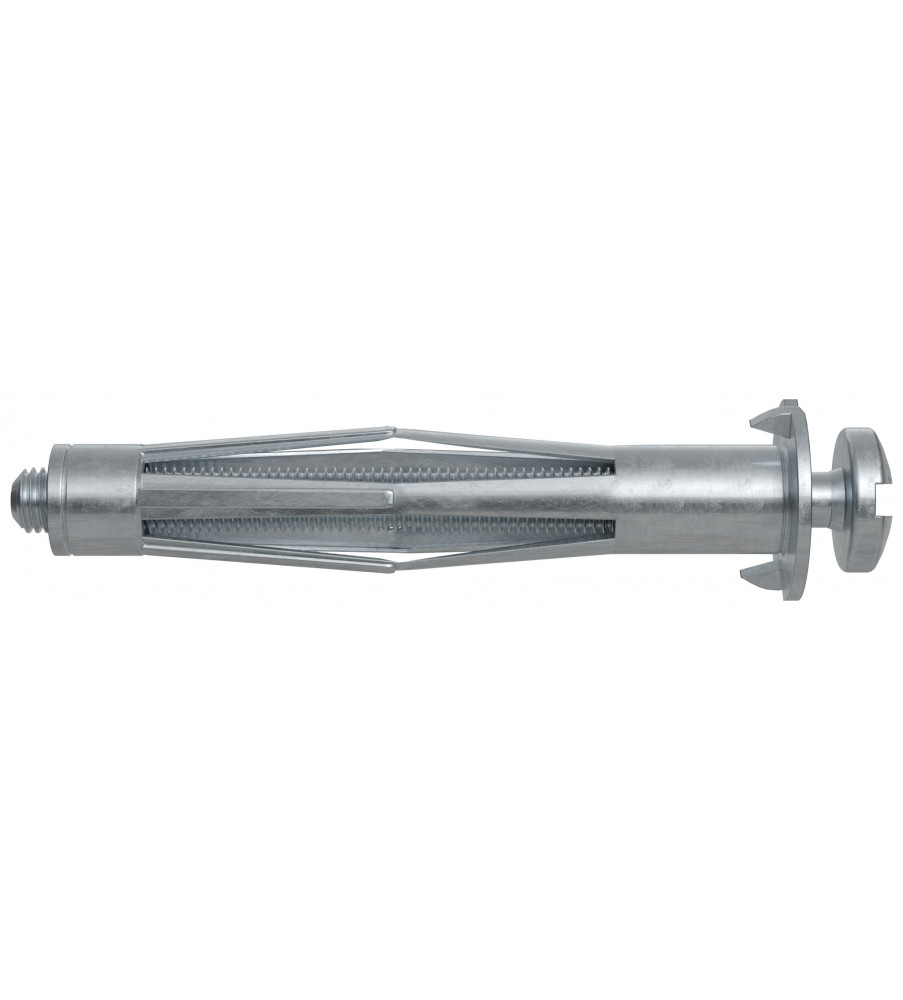 De fischer Metalen hollewandplug HM-S is een veelzijdige hollewandplug met metrische bout voor alle plaatmateriaal. De plug wordt met de fischer Hollewandplug tang HM-Z 1 in de voorsteekmontage geplaatst. Met de tang wordt de plug in de holle ruimte achter het plaatmateriaal getrokken. De armen spreiden zich daarbij uit achter het plaatmateriaal en verdelen de krachten over een groot oppervlak. Als alternatief is de montage ook met behulp van een schroevendraaier of een accu-schroefboormachine mogelijk. De fischer Metalen hollewandplug HM-S is geschikt voor de bevestiging van verlichting, handdoekenrekken en gordijnrails in de interieurbouw.