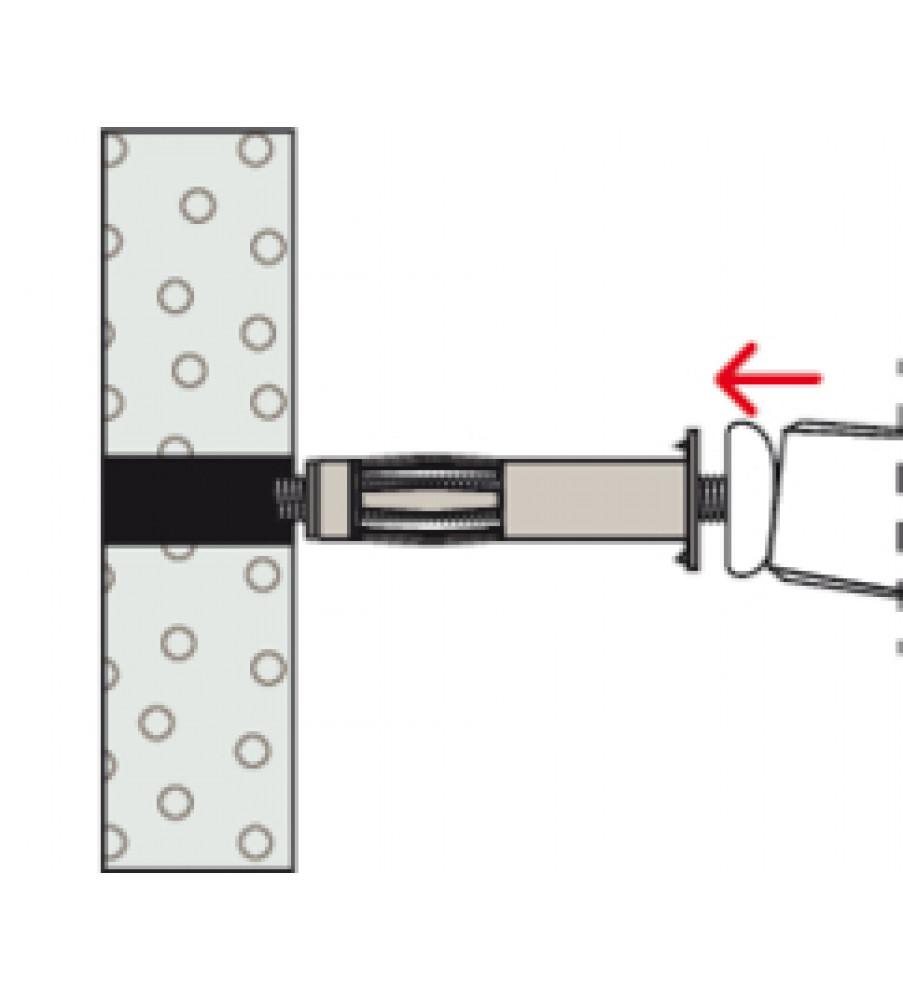 De weerhaken onder de kraag grijpen in het plaatmateriaal waardoor het meedraaien in het boorgat wordt voorkomen en een veilige montage gegarandeerd is.