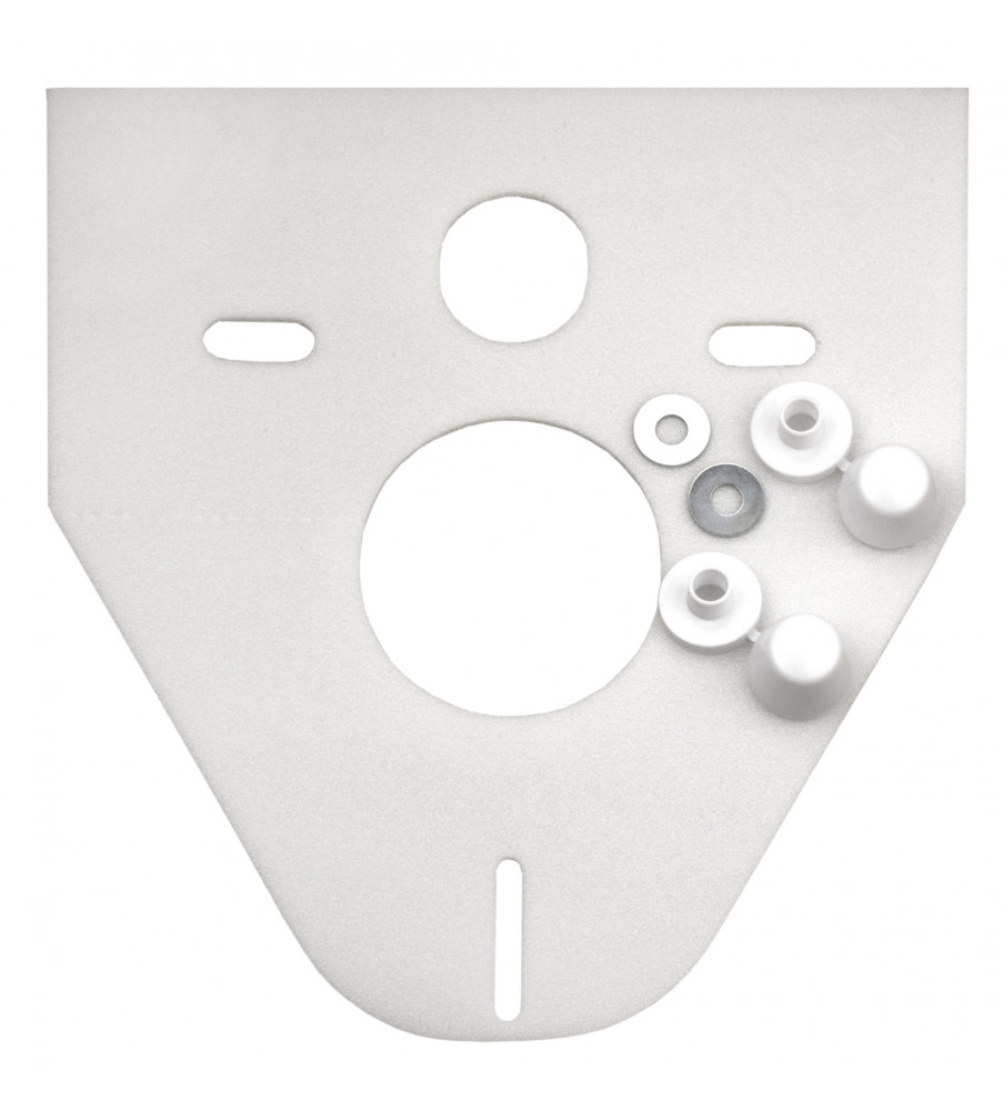 Elastische bevestigingsplaat om geluidsbruggen tussen wandtegels en sanitair keramiek te onderbreken