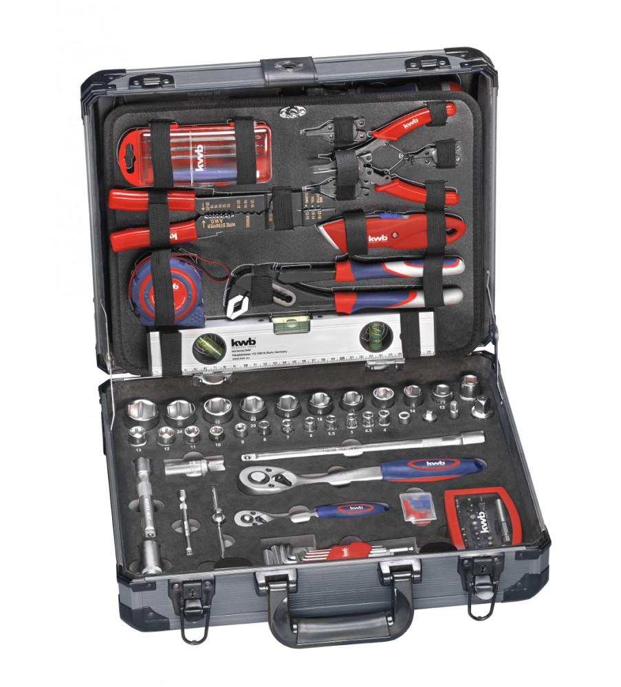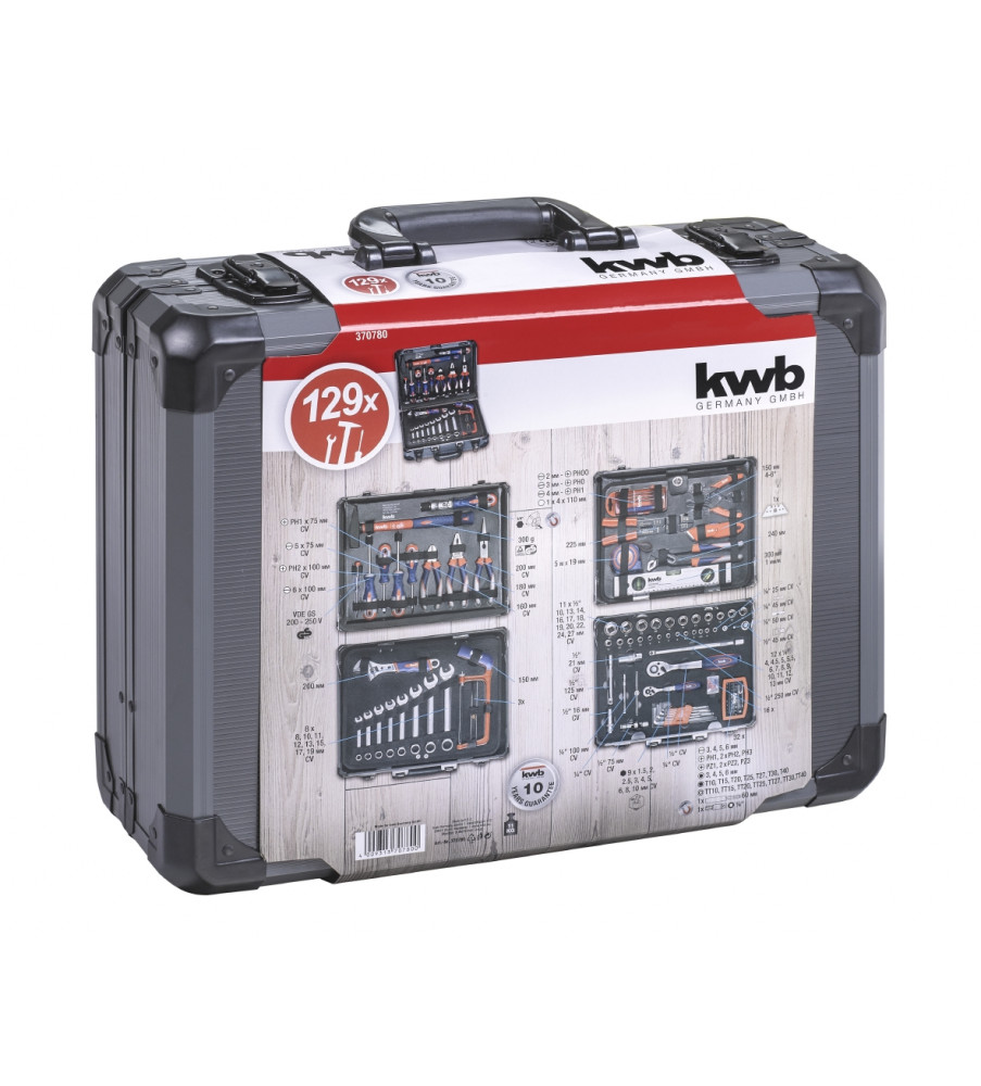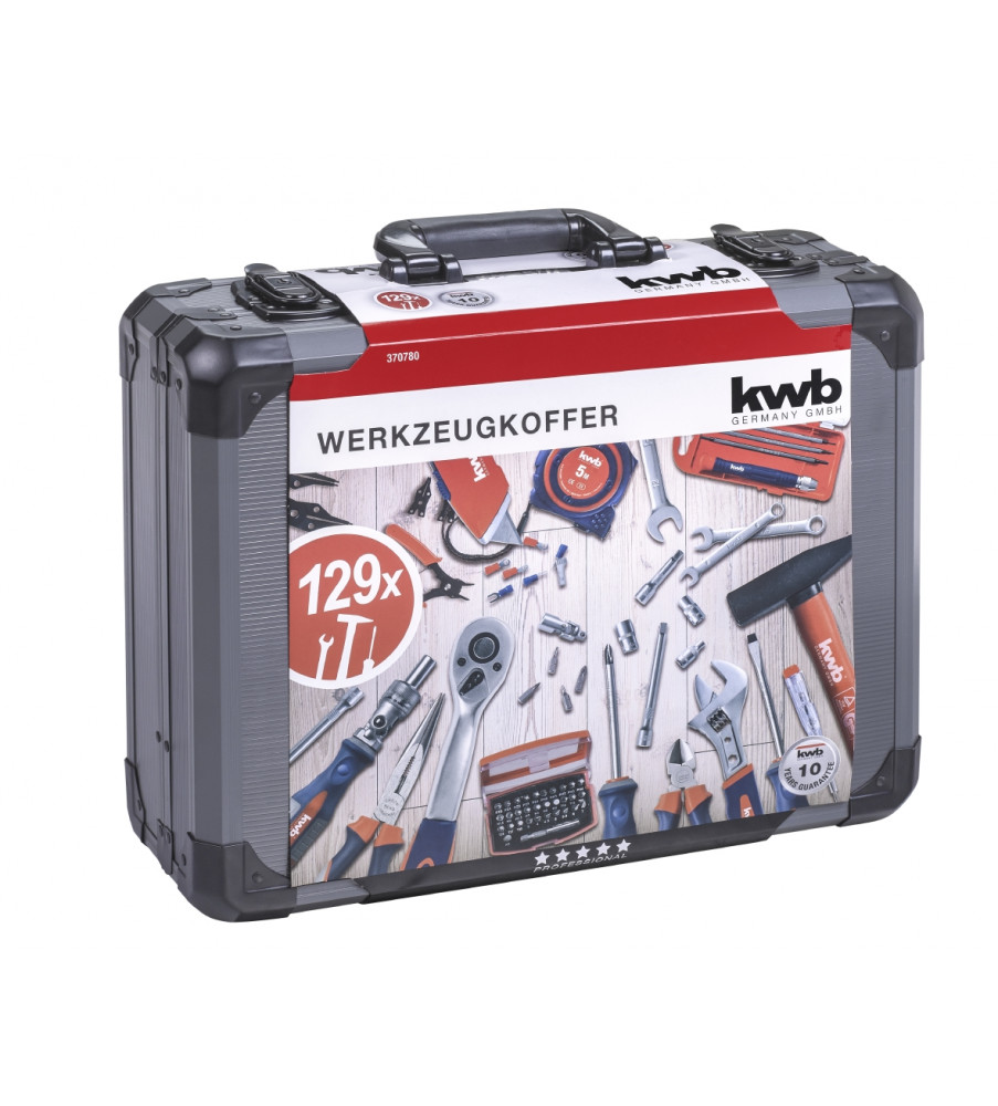 kwb Gereedschapskoffer, 129-delig -- De 129-delige gereedschapskoffer bevat een breed spectrum van gereedschappen. Ideaal als basisuitrusting voor de werkplaats in een stevige aluminium koffer voor mobiel gebruik.