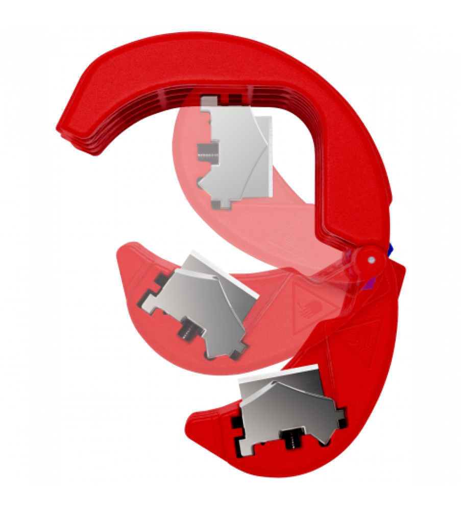 Draaibaar messenblok voor het snijden van kunststof buizen (mes in het midden) of druppel- en afdichtingsmanchetten (mes Buiten)