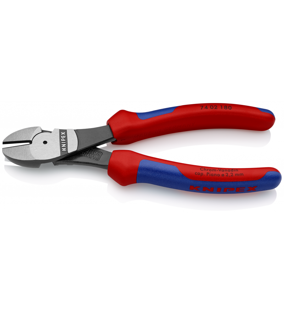 Met aangesmede scharnierpen voor zeer hoge en duurzame belasting. Perfect geschikt voor alle draadsoorten, ook pianodraad. Grote snijcapaciteit bij geringe krachtinspanning door optimale afstemming van snijhoek, overbrengingsverhouding en ergonomische greepvorm. Precisie-snijkanten extra inductief gehard, hardheid van de snijkanten ca. 64 HRC. Uiterst krachtig Chroom-Vanadiumstaal, in olie gehard en getemperd