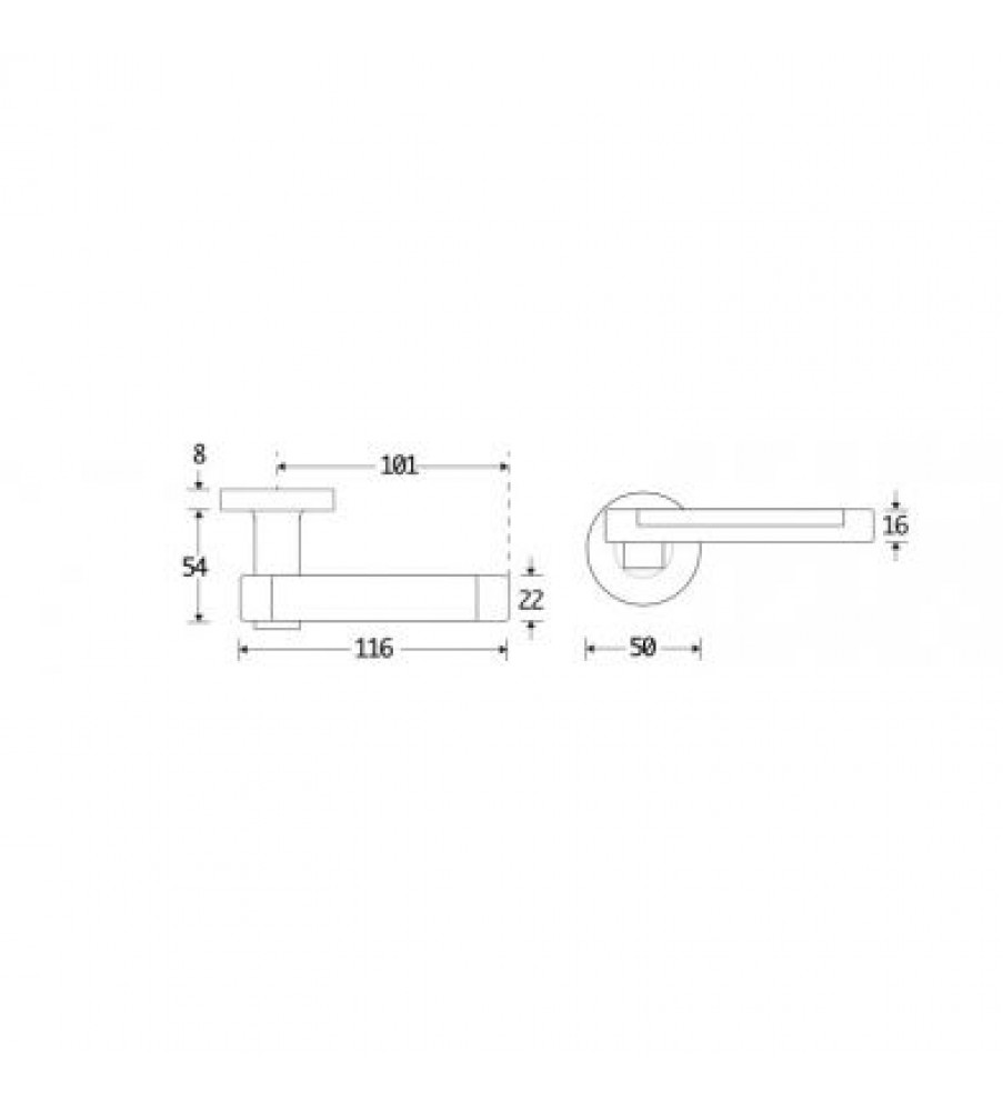 Type product: Deurkruk op rozet. Het krukrozet is geveerd (voorkomt hangende deurkrukken) en de schroefbevestiging op de deur is niet zichtbaar.