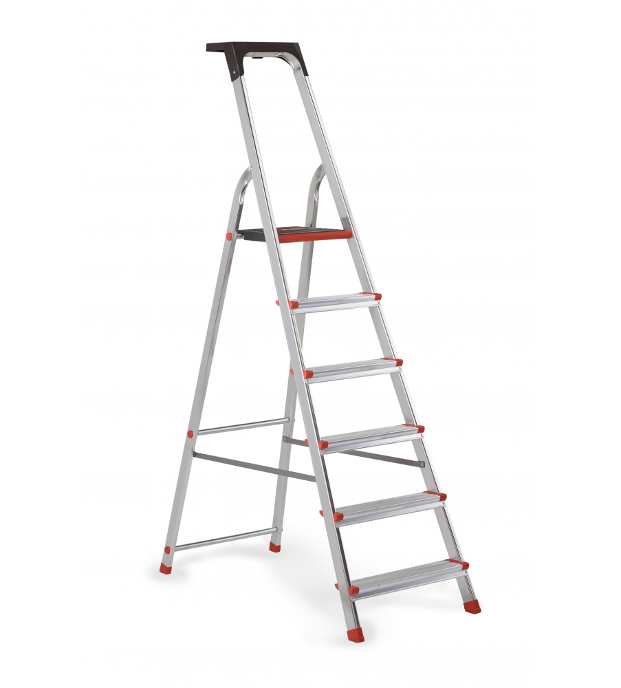 De Altrex Lima. Een lichtgewicht huishoudtrap De Lima is een gebruiksvriendelijke huishoudtrap die bij uitstek geschikt is voor kleine en grote klussen in en rond het huis. Deze huishoudtrap heeft een modern uiterlijk en is bovendien licht in gewicht. De huishoudtrap biedt je maximale zekerheid. Met zijn afgeronde treden en kniebeugel sta je prettig en ontspannen. De tooltray geeft je daarnaast ook nog alle mogelijkheid om gereedschap of materiaal op te leggen. De Lima is een complete huishoudtrap die past in elk huishouden.