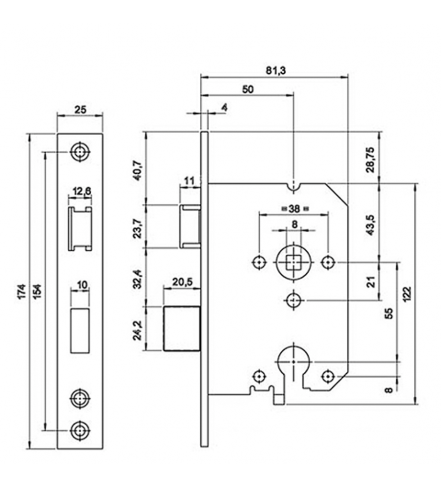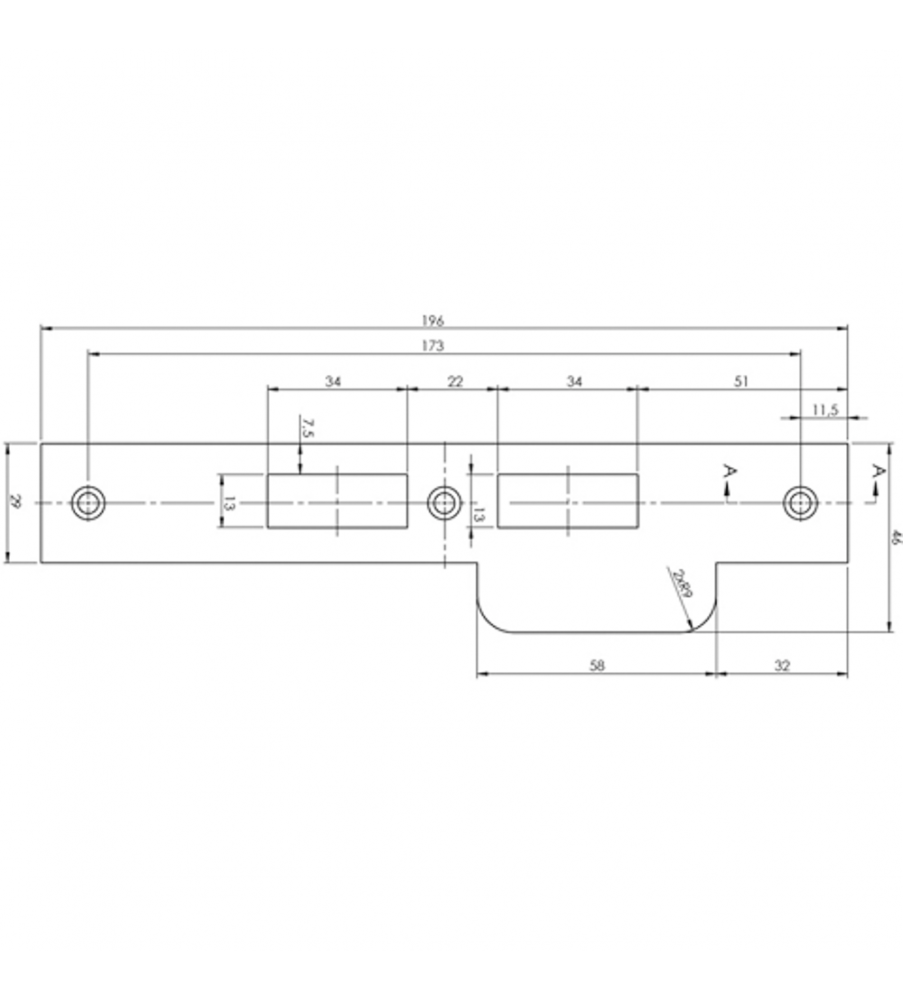 | Voorplaat | 174x25x4 mm |
