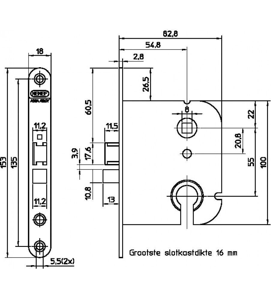 NEMEF DEURSLOT CILINDER 1449-55 DOORNMAAT 55MM PC55MM