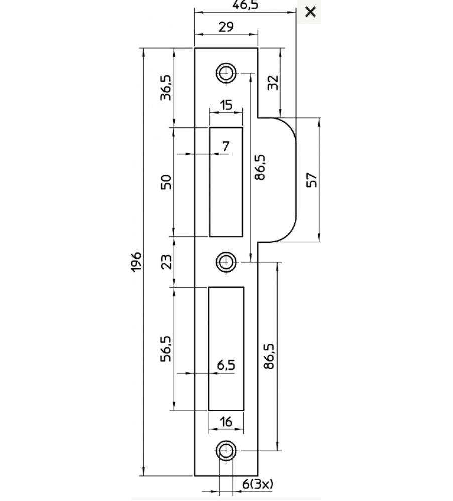 | Afmetingen sluitplaat (LxBxH/B+Lip) | 196 x 29/46,5 mm |
