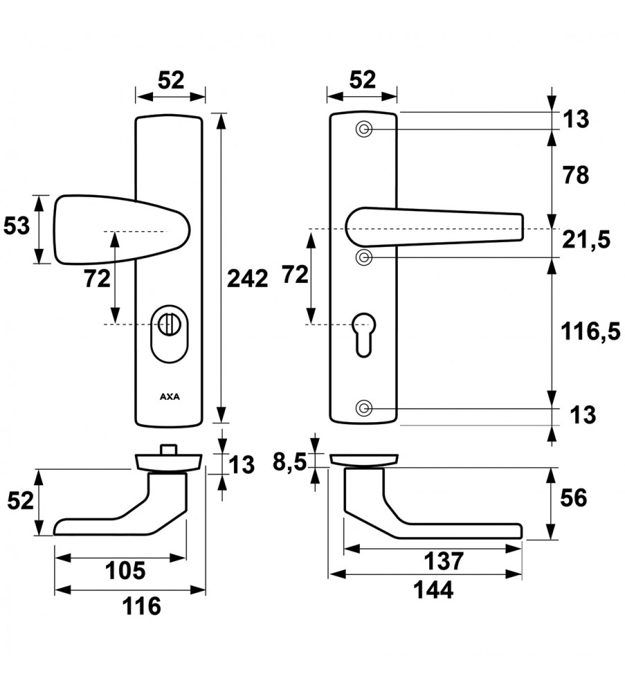 AXA PREMIUM VEILIGHEIDSBESLAG ZWART WING-KNOP+ARROW PC72 ANTI-KERNTREK