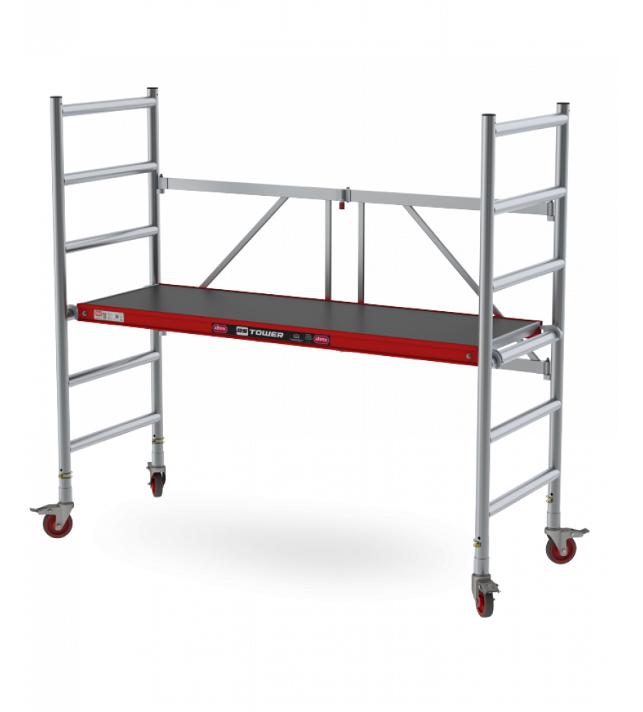 De RS 44-POWER is een handige, compacte kamersteiger voor smalle ruimtes. Geschikt voor buiten en ideaal voor binnen door zijn compacte formaat. Wil je nog verder de hoogte in? Het systeem is uit te breiden met componenten uit de RS TOWER 4-serie. Zo kun je deze kamersteiger eenvoudig uitbouwen tot een werkhoogte van 8.80 meter.