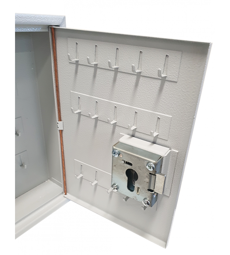 Degelijke sleutelkasten, inliggende deur. Vaste metalen hakenlijsten.