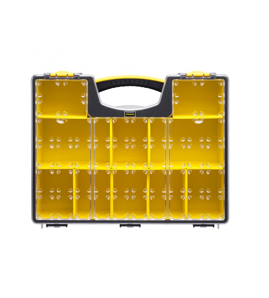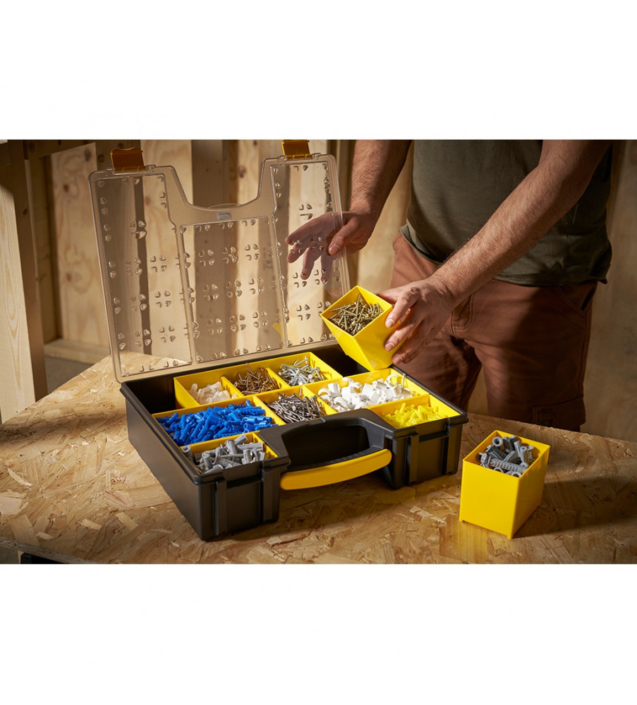 Deksel houdt onderdeeltjes in vakjes op hun plaats