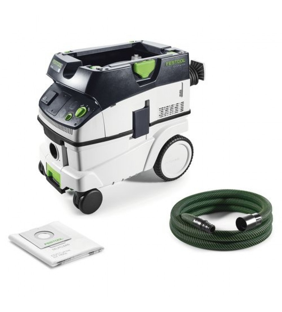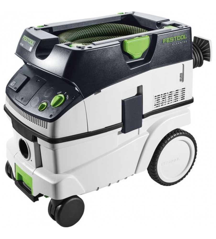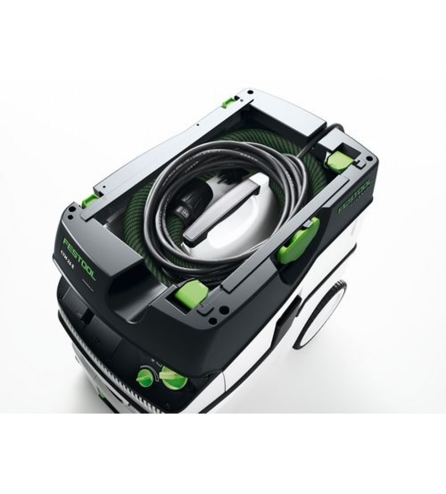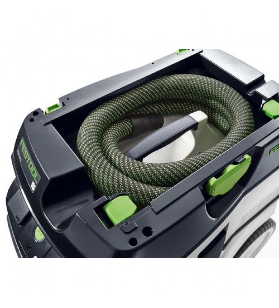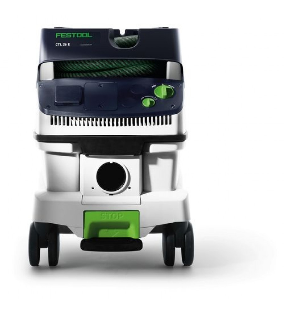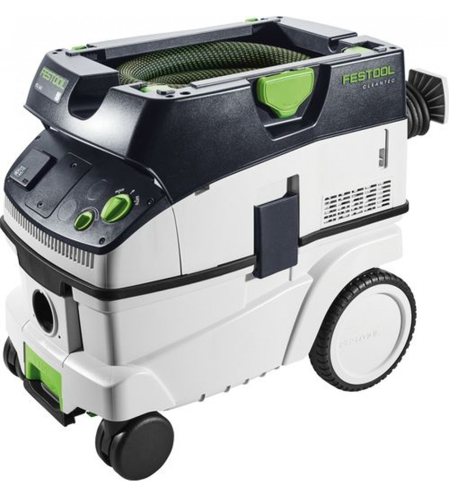 Compact en toch groot. Licht en toch krachtig. Op de bouwplaats of in de werkplaats - de CLEANTEC CTL 26 met een reservoir van 26 l biedt dankzij de royale reservoirgeometrie veel volume bij compacte afmetingen. Tegelijkertijd is hij uiterst mobiel dankzij de zwenkwielen, achterwielen en de beugel. En met een parkeerrem staat de CLEANTEC veilig op elke ondergrond en tijdens het transport. Het geheel in de zuigerkop geïntegreerde vlakfilter zorgt voor een volledig volumegebruik: daardoor zijn het brutovolume en het nettovolume van het reservoir vrijwel identiek. De extreem compacte hogecapaciteitsturbine levert navenante afzuigingscapaciteit. 3900 l/min volumestroom - er blijft niets over dan alleen zuivere lucht. Toegelaten voor stof van de stofklasse L.Opgenomen vermogen 350 – 1200 W; Volumenstroom max. 3900 l/min; Onderdruk max. 24000 Pa; Filteroppervlak 6318 cm²; Netaansluitkabel, met rubber geïsoleerd 7.5 m; Reservoir-/filterzakvolume 26/24 l; Afmetingen (L x B x H) 630 x 365 x 540 mm; Aangesloten vermogen stekkerdoos max. 2400 W; {Staubklasse} L; Gewicht 13.9 kgStofzuigen: A-beoordeeld geluidsdrukniveau LpA 71 dB(A); Stofzuigen: Normenreeks EN 60745 {60335-2-69}; Stofzuigen: Onzekerheid (geluid) K 3 dB