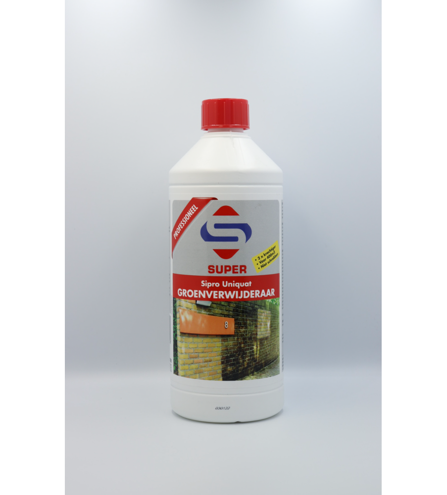 Super Groenverwijderaar kan tot wel 400m2 groen verwijderen. Niet schrobben/naspoelen en biologisch afbreekbaar. De Super Groenverwijderaar is geconcentreerd en rekent snel af met alle vormen van groene aanslag op o.a. trottoir, oprijlaan, gevels, zonwering, hout, (tuin)meubilair en overige oppervlakken. Na gebruik hoeft u niet te schrobben of na te spelen en binnen 36 uur is de groene aanslag verwijderd. Vóór gebruik het product aanlengen met water. Dit product is biologisch afbreekbaar. Product spuiten of gieten met een oplossing van 250 ML op 10 liter water. Na gebruik niet naspoelen of borstelen. Het product dient uitsluitend toegepast te worden in droge periodes zonder regen en bij een temperatuur van 10 graden Celcius.