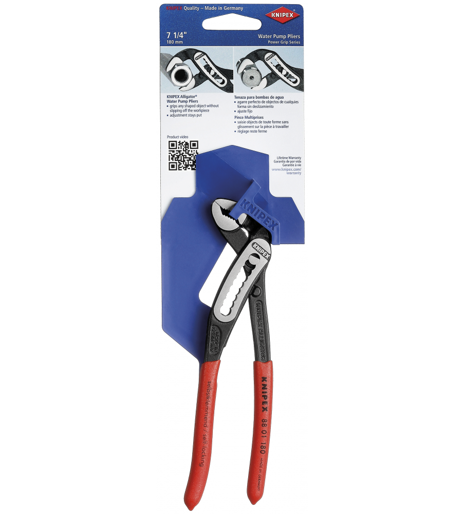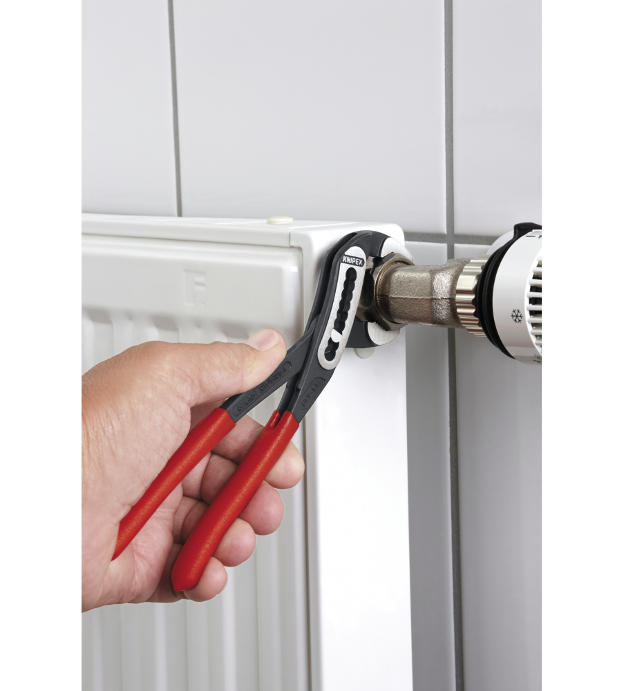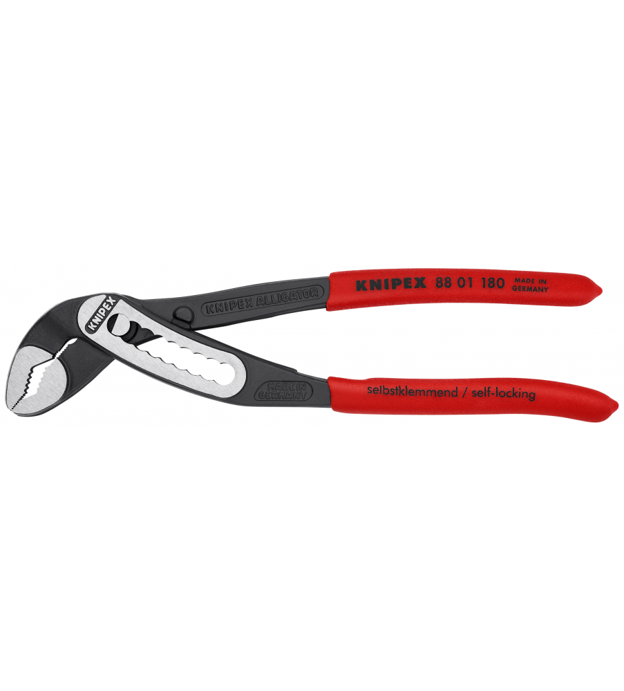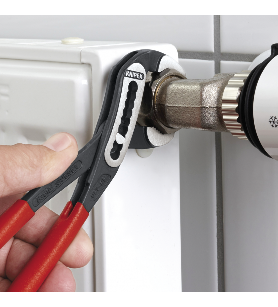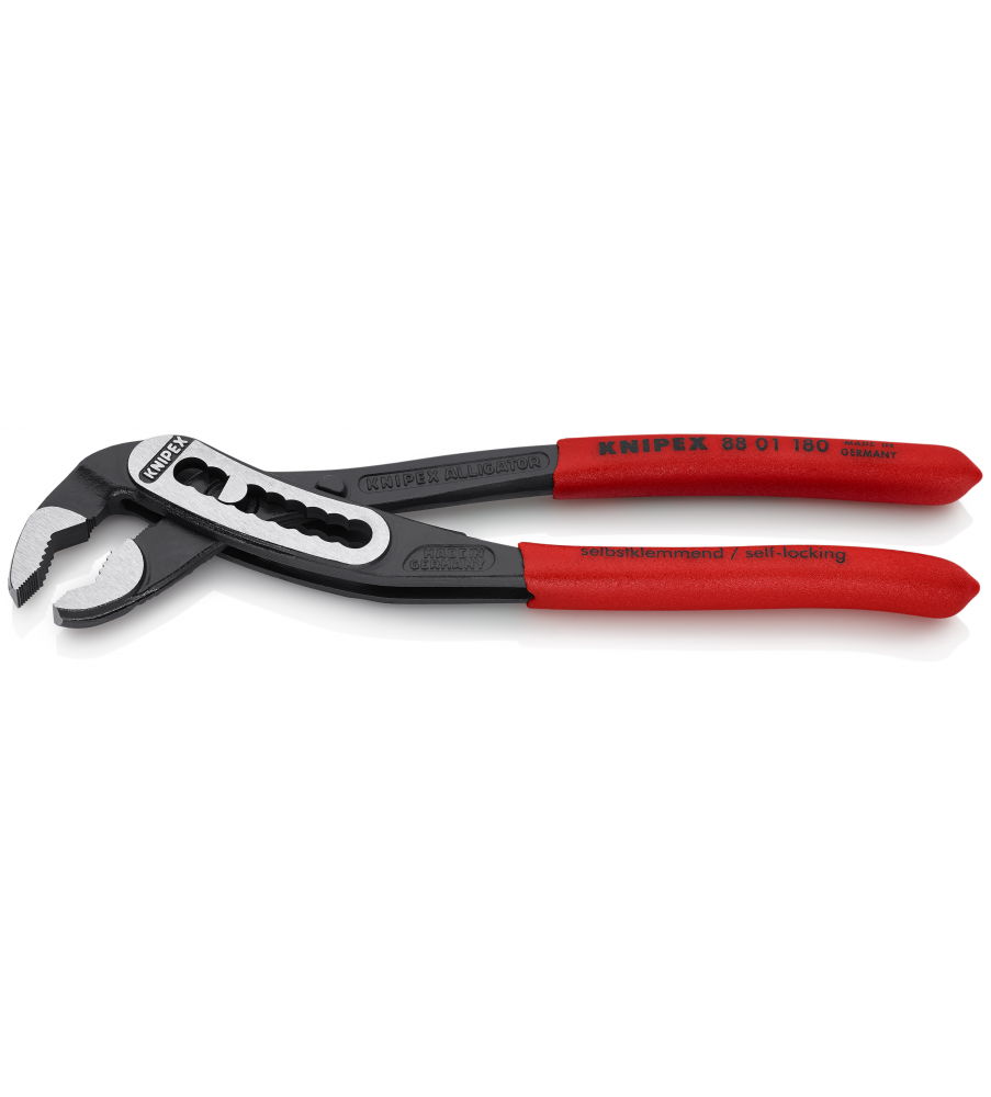 Hoge stabiliteit dankzij dubbele geleiding. Zelfklemmend op buizen en moeren: glijdt niet van het werkstuk af en werkt krachtbesparend. Klembeveiliging verhindert verwondingen. Gunstige hefboomwerking: optimale krachtoverbrenging. Grijpvlakken met speciaalgeharde tanden, hardheid van de tanden ca. 61 HRC: steeds weer veilig grijpen dankzij hoge slijtvastheid. Chroom-Vanadium elektrostaal, in olie gehard en getemperd.